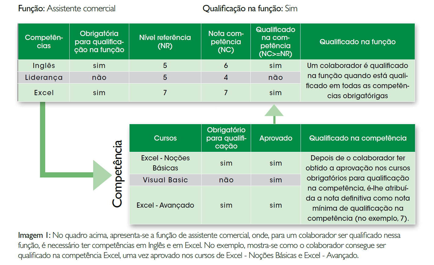 L´application a répondu à cette question faisant l´association de toutes les formations à des qualifications et l´association des qualifications à des postes. En même temps, pour tous les postes, ont été définies quelles seraient les qualifications obligatoires pour qu´un employé puisse exercer un certain poste et, pour chaque qualification ont été établies des formations obligatoires pour pouvoir considérer qu´un employé possède la qualification exigée. Ce qui implique non seulement la fréquentation de la formation mais aussi sa réussite. En parallèle, ont été développés des critères de recherche et des rapports qui permettent, de manière immédiate, d´avoir accès à l´information sur qui n´est pas qualifié, qui est qualifié et pour quel poste. Observons l´image 1 :